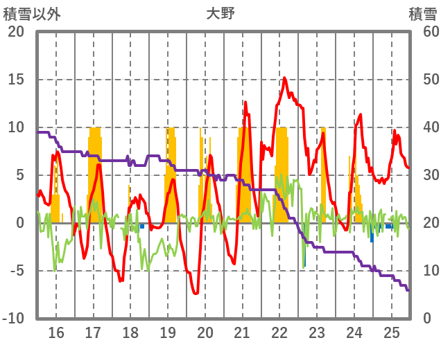 | 日 | 時 | 気温 | 降水 | 風向/風速 | 日照 | 積雪 | 降雪 |