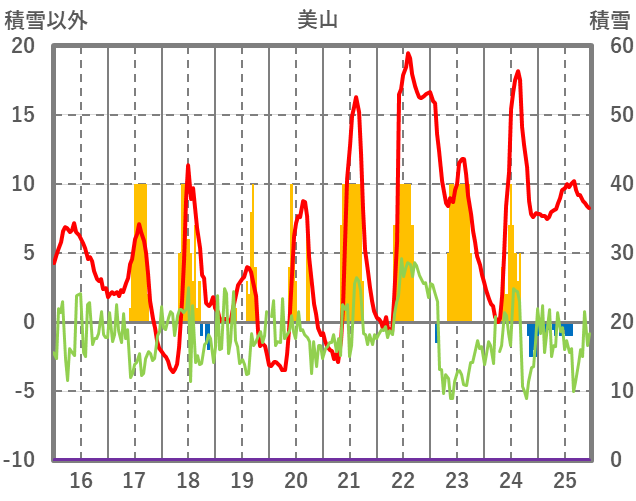 | 日 | 時 | 気温 | 降水 | 風向/風速 | 日照 | 積雪 | 降雪 |