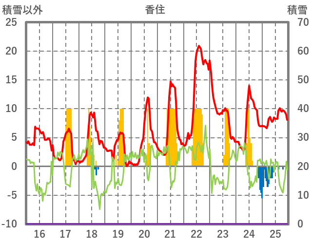 | 日 | 時 | 気温 | 降水 | 風向/風速 | 日照 | 積雪 | 降雪 |