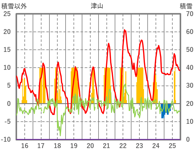 | 日 | 時 | 気温 | 降水 | 風向/風速 | 日照 | 積雪 | 降雪 |