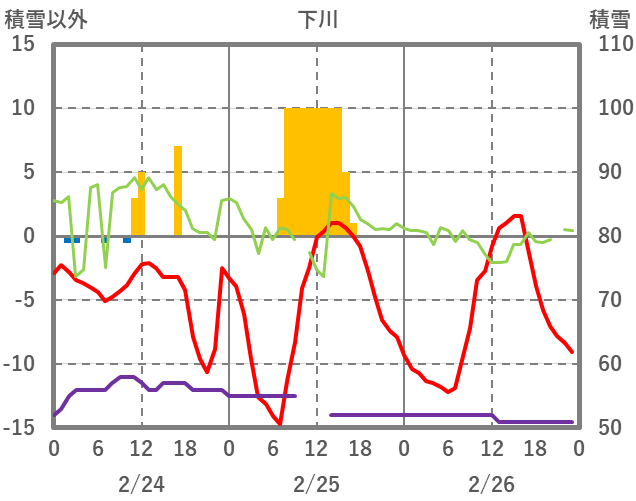 | 日 | 時 | 気温 | 降水 | 風向/風速 | 日照 | 積雪 | 降雪 |