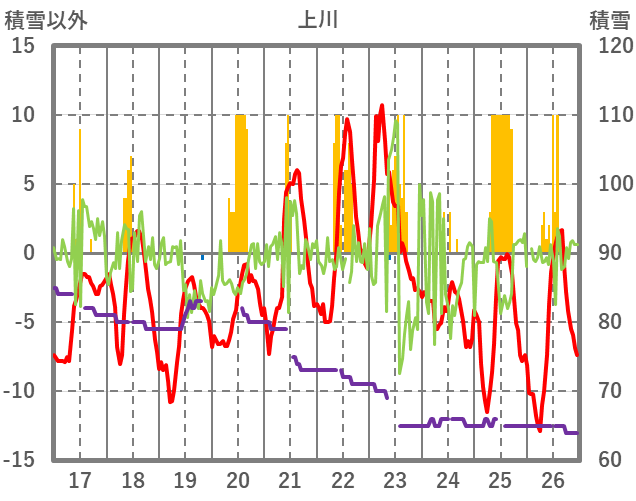 | 日 | 時 | 気温 | 降水 | 風向/風速 | 日照 | 積雪 | 降雪 |
