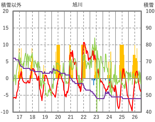 | 日 | 時 | 気温 | 降水 | 風向/風速 | 日照 | 積雪 | 降雪 |