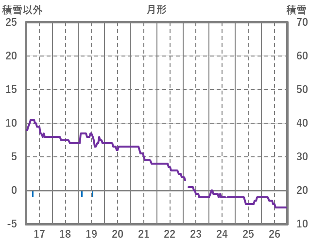 | 日 | 時 | 気温 | 降水 | 風向/風速 | 日照 | 積雪 | 降雪 |