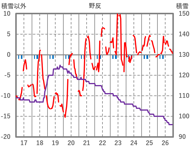 | 日 | 時 | 気温 | 降水 | 風向/風速 | 日照 | 積雪 | 降雪 |