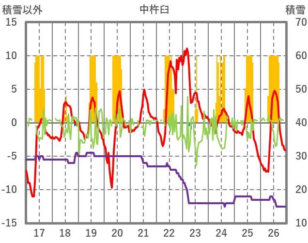 | 日 | 時 | 気温 | 降水 | 風向/風速 | 日照 | 積雪 | 降雪 |