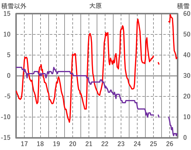 | 日 | 時 | 気温 | 降水 | 風向/風速 | 日照 | 積雪 | 降雪 |