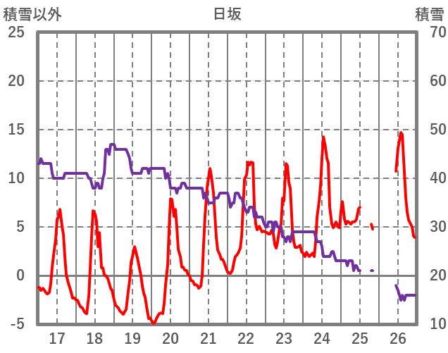 | 日 | 時 | 気温 | 降水 | 風向/風速 | 日照 | 積雪 | 降雪 |
