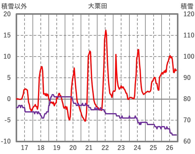 | 日 | 時 | 気温 | 降水 | 風向/風速 | 日照 | 積雪 | 降雪 |