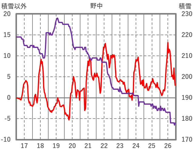 | 日 | 時 | 気温 | 降水 | 風向/風速 | 日照 | 積雪 | 降雪 |