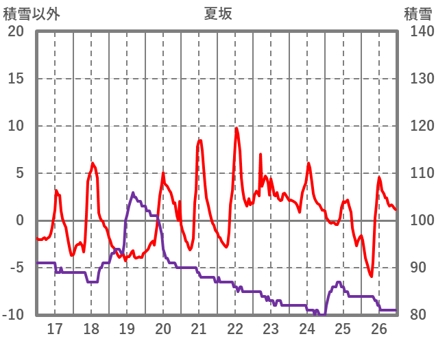 | 日 | 時 | 気温 | 降水 | 風向/風速 | 日照 | 積雪 | 降雪 |