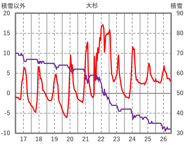 | 日 | 時 | 気温 | 降水 | 風向/風速 | 日照 | 積雪 | 降雪 |