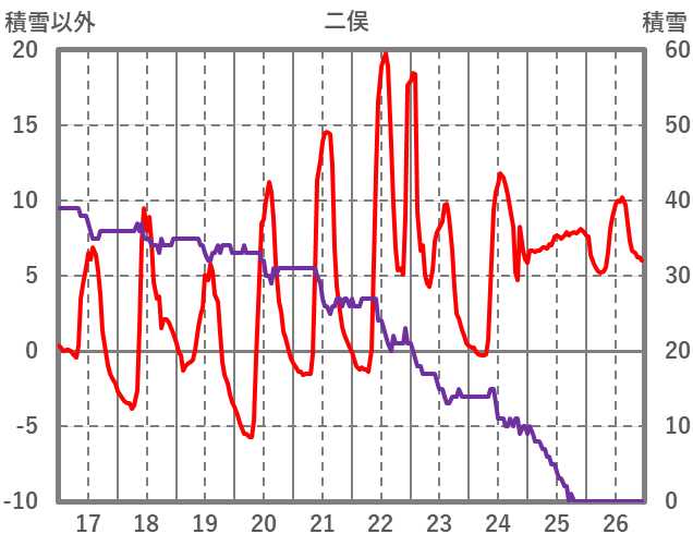 | 日 | 時 | 気温 | 降水 | 風向/風速 | 日照 | 積雪 | 降雪 |