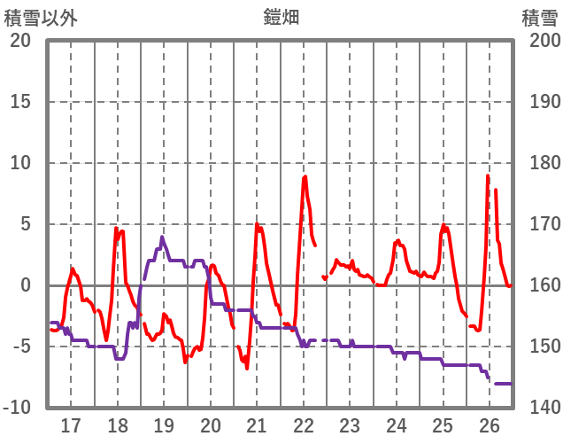 | 日 | 時 | 気温 | 降水 | 風向/風速 | 日照 | 積雪 | 降雪 |