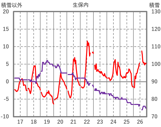 | 日 | 時 | 気温 | 降水 | 風向/風速 | 日照 | 積雪 | 降雪 |