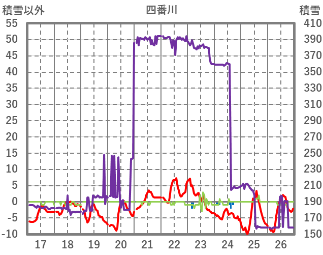 | 日 | 時 | 気温 | 降水 | 風向/風速 | 日照 | 積雪 | 降雪 |