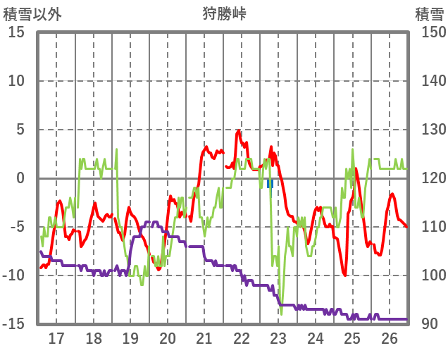 | 日 | 時 | 気温 | 降水 | 風向/風速 | 日照 | 積雪 | 降雪 |