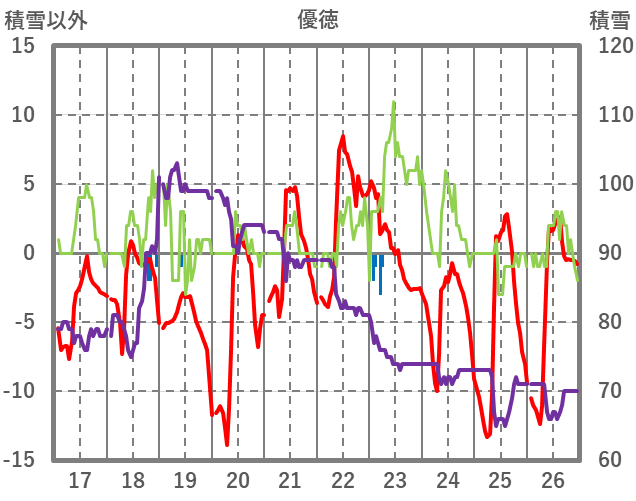 | 日 | 時 | 気温 | 降水 | 風向/風速 | 日照 | 積雪 | 降雪 |