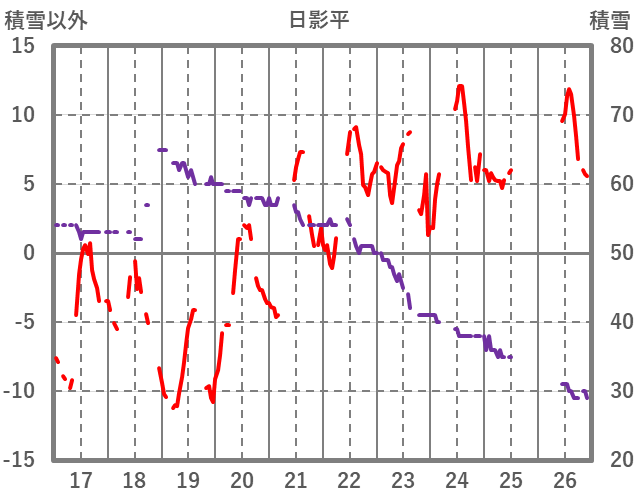 | 日 | 時 | 気温 | 降水 | 風向/風速 | 日照 | 積雪 | 降雪 |
