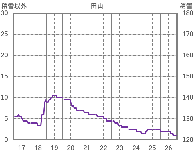 | 日 | 時 | 気温 | 降水 | 風向/風速 | 日照 | 積雪 | 降雪 |