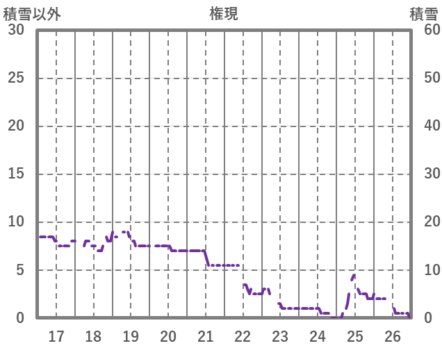 | 日 | 時 | 気温 | 降水 | 風向/風速 | 日照 | 積雪 | 降雪 |