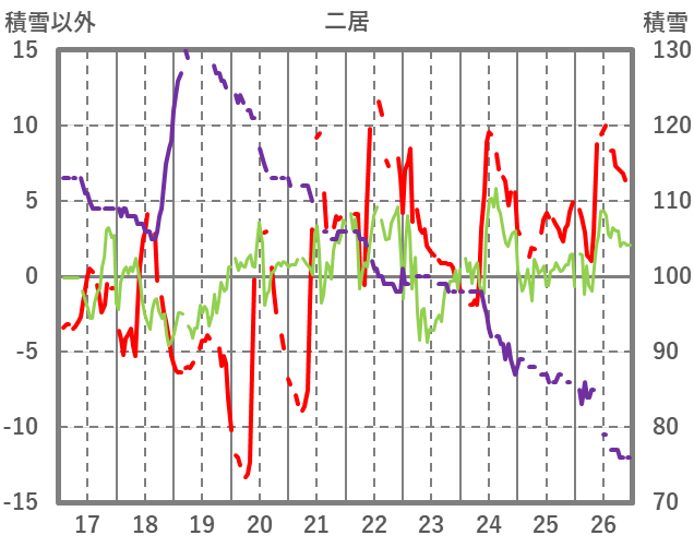 | 日 | 時 | 気温 | 降水 | 風向/風速 | 日照 | 積雪 | 降雪 |