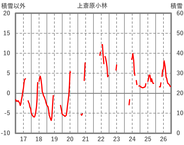 | 日 | 時 | 気温 | 降水 | 風向/風速 | 日照 | 積雪 | 降雪 |