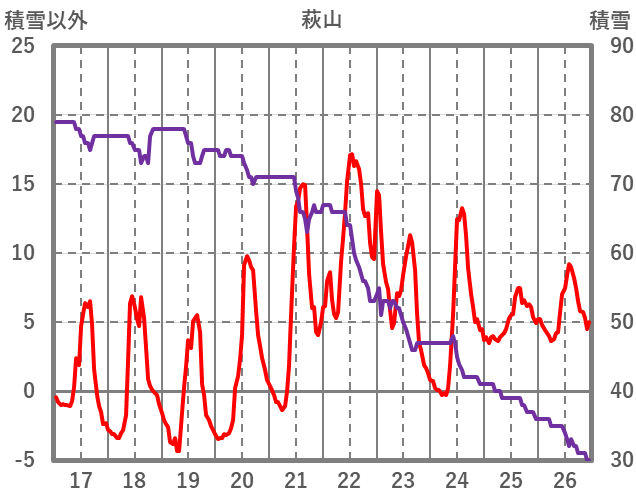 | 日 | 時 | 気温 | 降水 | 風向/風速 | 日照 | 積雪 | 降雪 |