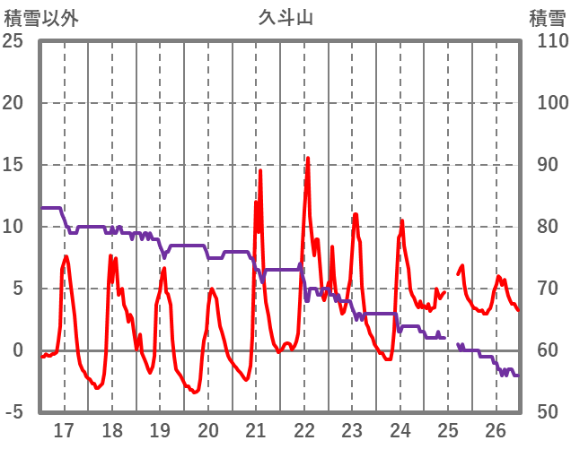 | 日 | 時 | 気温 | 降水 | 風向/風速 | 日照 | 積雪 | 降雪 |
