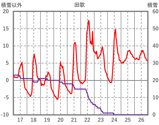 | 日 | 時 | 気温 | 降水 | 風向/風速 | 日照 | 積雪 | 降雪 |