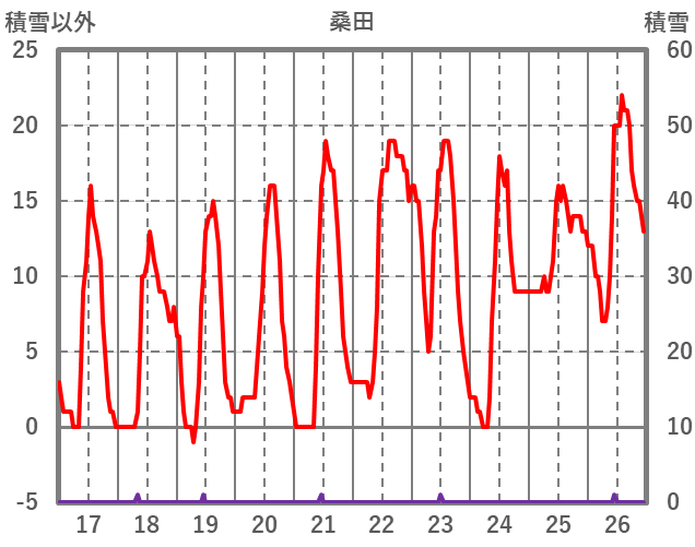 | 日 | 時 | 気温 | 降水 | 風向/風速 | 日照 | 積雪 | 降雪 |