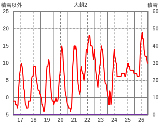 | 日 | 時 | 気温 | 降水 | 風向/風速 | 日照 | 積雪 | 降雪 |
