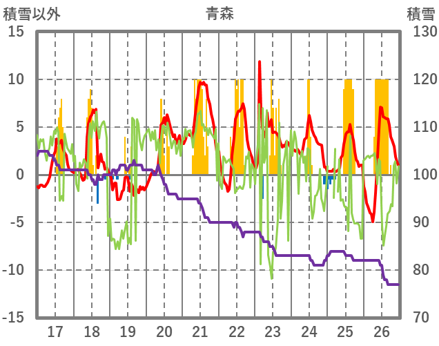 | 日 | 時 | 気温 | 降水 | 風向/風速 | 日照 | 積雪 | 降雪 |