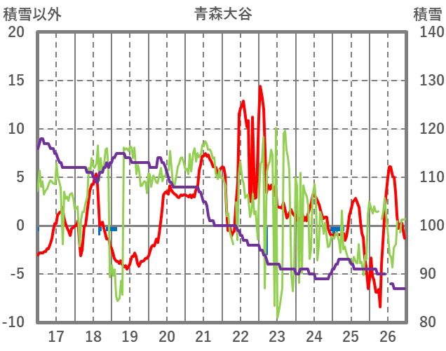 | 日 | 時 | 気温 | 降水 | 風向/風速 | 日照 | 積雪 | 降雪 |