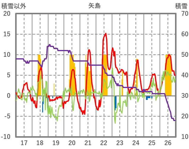 | 日 | 時 | 気温 | 降水 | 風向/風速 | 日照 | 積雪 | 降雪 |