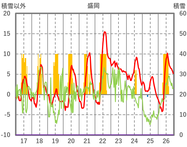 | 日 | 時 | 気温 | 降水 | 風向/風速 | 日照 | 積雪 | 降雪 |