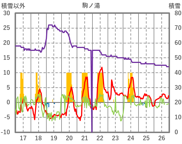 | 日 | 時 | 気温 | 降水 | 風向/風速 | 日照 | 積雪 | 降雪 |