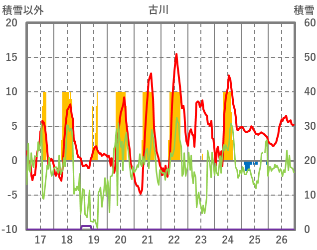 | 日 | 時 | 気温 | 降水 | 風向/風速 | 日照 | 積雪 | 降雪 |