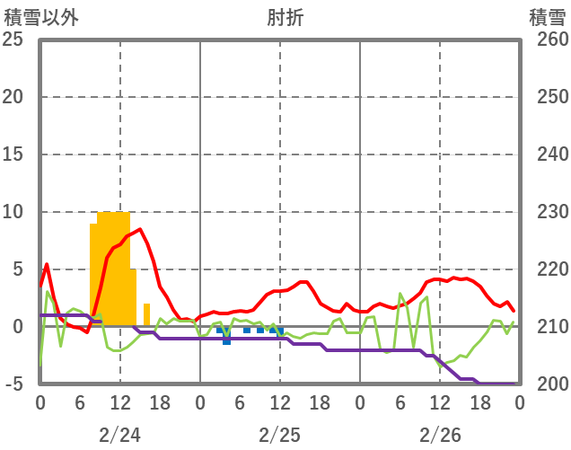 | 日 | 時 | 気温 | 降水 | 風向/風速 | 日照 | 積雪 | 降雪 |