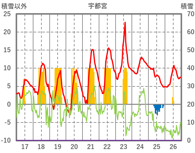 | 日 | 時 | 気温 | 降水 | 風向/風速 | 日照 | 積雪 | 降雪 |