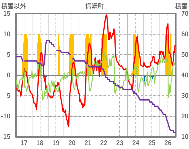 | 日 | 時 | 気温 | 降水 | 風向/風速 | 日照 | 積雪 | 降雪 |