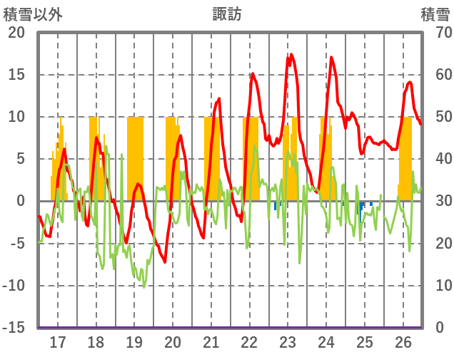 | 日 | 時 | 気温 | 降水 | 風向/風速 | 日照 | 積雪 | 降雪 |