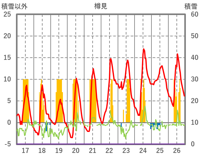 | 日 | 時 | 気温 | 降水 | 風向/風速 | 日照 | 積雪 | 降雪 |