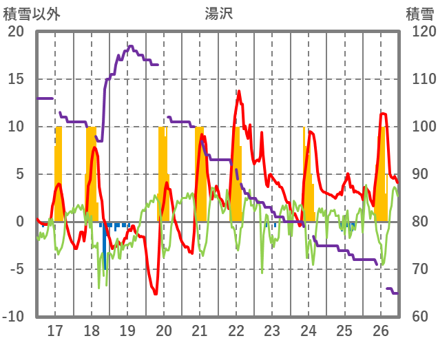 | 日 | 時 | 気温 | 降水 | 風向/風速 | 日照 | 積雪 | 降雪 |