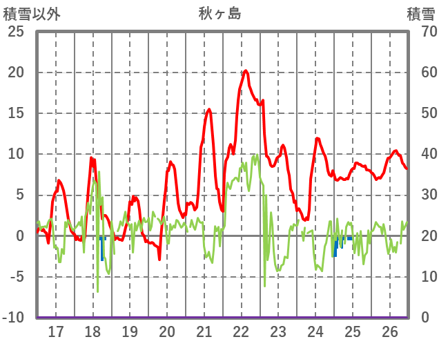 | 日 | 時 | 気温 | 降水 | 風向/風速 | 日照 | 積雪 | 降雪 |