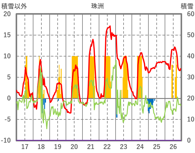 | 日 | 時 | 気温 | 降水 | 風向/風速 | 日照 | 積雪 | 降雪 |