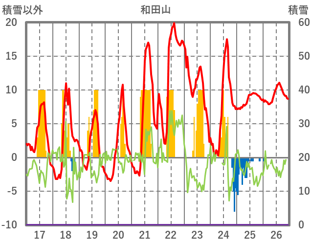 | 日 | 時 | 気温 | 降水 | 風向/風速 | 日照 | 積雪 | 降雪 |