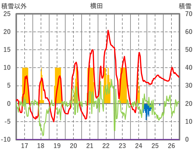 | 日 | 時 | 気温 | 降水 | 風向/風速 | 日照 | 積雪 | 降雪 |