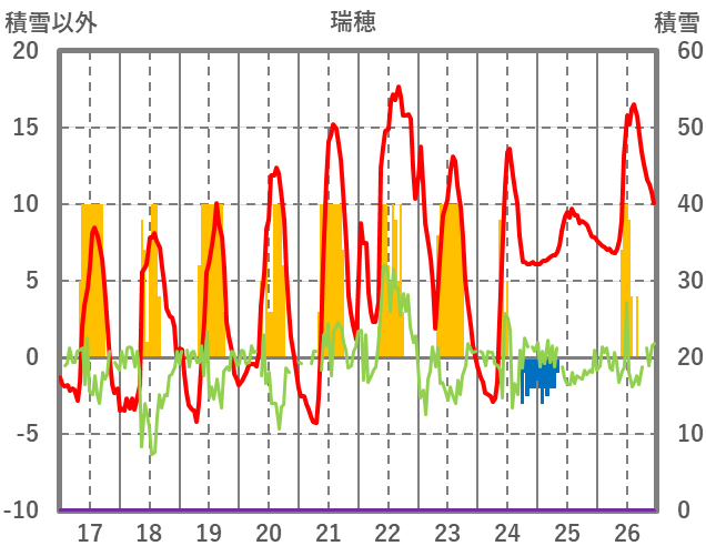 | 日 | 時 | 気温 | 降水 | 風向/風速 | 日照 | 積雪 | 降雪 |