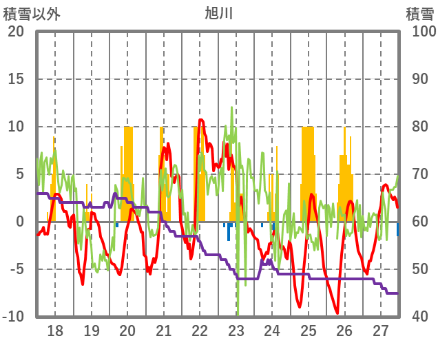 | 日 | 時 | 気温 | 降水 | 風向/風速 | 日照 | 積雪 | 降雪 |